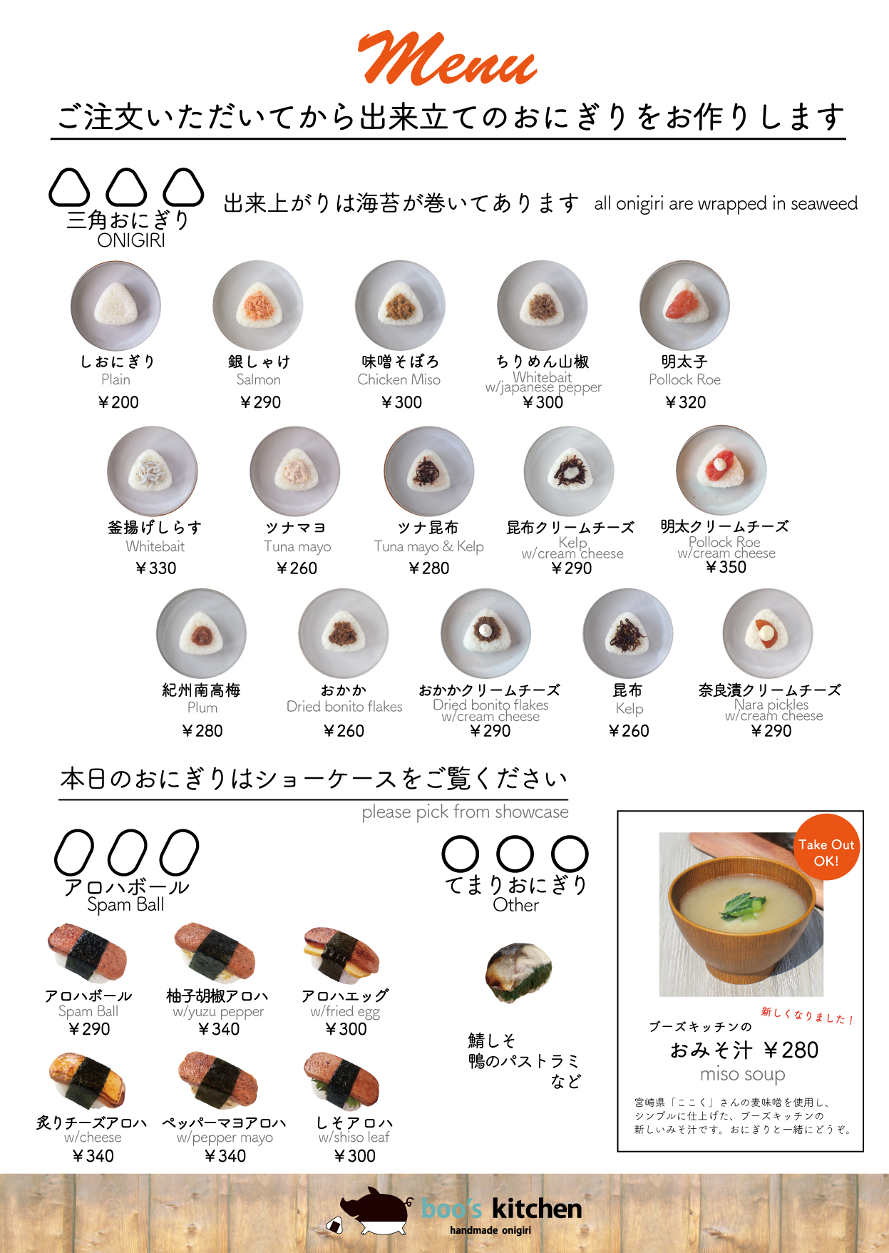 大阪・梅田おにぎり専門店 ブーズキッチンでは、「あたたかい」「出来立て」「手作り」を